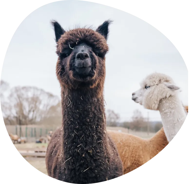 Alpaky patří mezi nejklidnější obyvatele farmy. Jsou tiché, vnímavé a velmi citlivé na své okolí. Rády pozorují, co se kolem nich děje, a většinu času působí, jako by měly všechno v dokonalé rovnováze. Když ale mají hlad a vědí, že se blíží krmení, dokážou se ozvat svými typickými vtipnými zvuky. :)