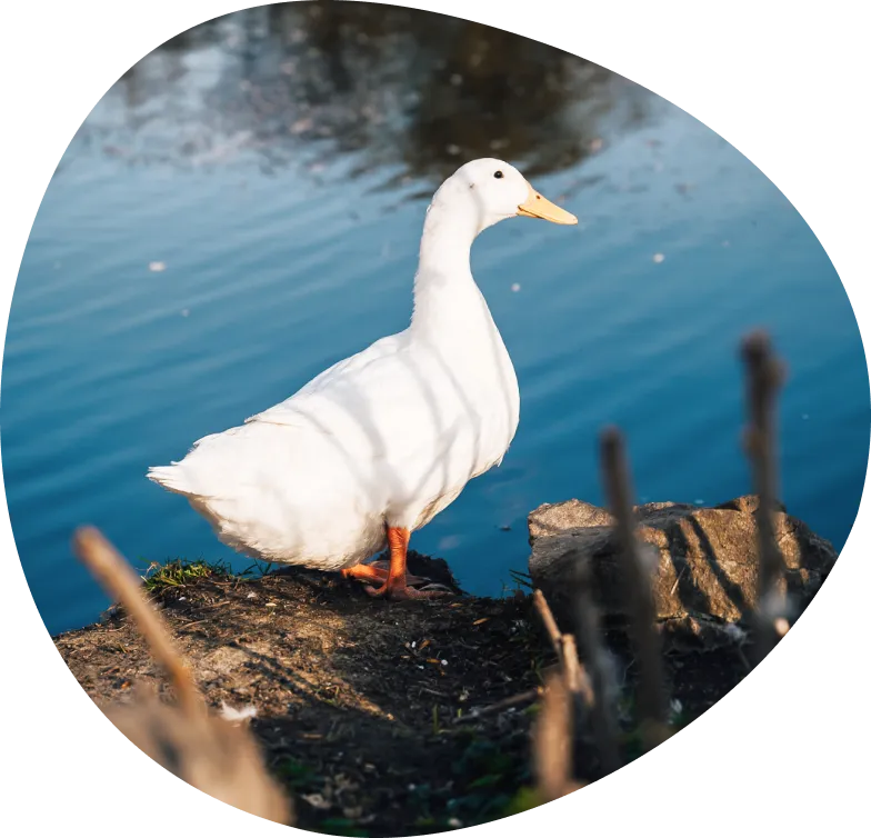 Na farmě u nás potkáte také naše vodní opeřence – husy landéské a kachny domácí. Oba druhy jsou nedílnou součástí tradičního hospodářství a na farmě rozhodně mají své místo. Přestože působí klidně, jde o velmi vnímavá a zajímavá zvířata s vlastní povahou.